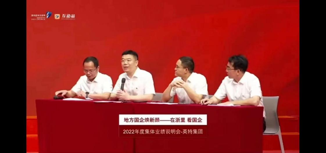 5月17日,深圳證券交易所上市大廳,浙江省國資委聯(lián)合深圳證券交易所共同舉行“地方國企煥新顏——在浙里 看國企”浙江國有控股上市公司2022年度集體業(yè)績說明會暨“走進(jìn)深交所”活動。浙江省國資委黨委委員、副主任顧濤出席活動并致辭。英特集團(tuán)作為5家在深交所掛牌的浙江國有控股上市公司代表之一,作業(yè)績說明并集中回答了投資者提問。公司黨委書記、董事長應(yīng)徐頡,黨委委員、董事、副總經(jīng)理費(fèi)榮富,獨(dú)立董事陳昊(線上),董事會秘書譚江,財務(wù)負(fù)責(zé)人曹德智參加了本次業(yè)績說明會。