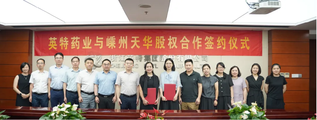 7月2日,英特藥業(yè)與嵊州市天華大藥房醫(yī)藥有限公司股權(quán)合作簽約儀式隆重舉行。省國貿(mào)集團(tuán)黨委委員、副總經(jīng)理,英特集團(tuán)黨委書記、董事長應(yīng)徐頡,英特集團(tuán)總經(jīng)理、英特藥業(yè)董事長汪洋,嵊州天華創(chuàng)始人呂健書、董事長章魯野及雙方相關(guān)負(fù)責(zé)人出席本次簽約儀式,并共同簽署《股權(quán)轉(zhuǎn)讓協(xié)議》。